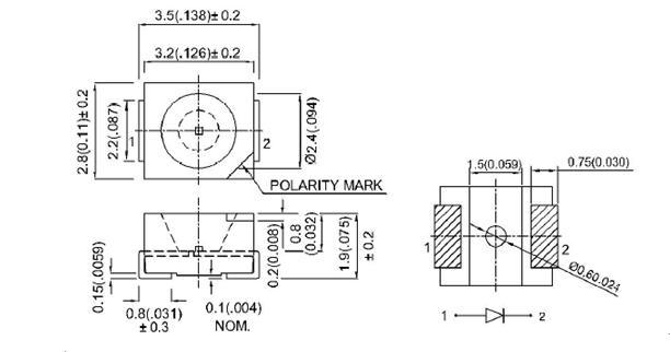 XK -3528W-0.06W | 正白 | 0.06 | 20 | 3.0-3.4 | 6000-6500K | 6-9 | 120 | 70/80 |
